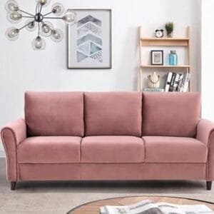 Upholstered in premium-quality peach velvet fabric, offering a soft, plush, and luxurious seating experience