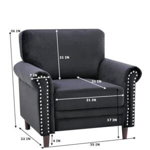 • Upholstered in premium-quality black velvet fabric, providing a soft, plush, and luxurious seating experience