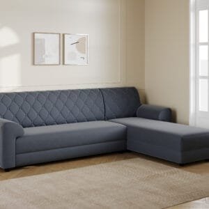 Contemporary L-shape design maximizes seating space and fits perfectly in corner layouts